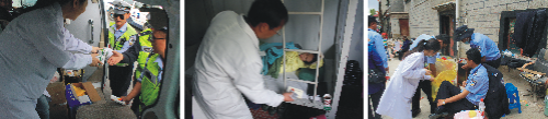 8月14日上午,阜康醫(yī)院組織起一支醫(yī)療小分隊,攜帶各種藥物與電子血壓計等醫(yī)療器械,在醫(yī)務(wù)科副主任黃川川及歐醫(yī)生等人的帶領(lǐng)下,奔赴哲蚌寺,步行走過寺廟各大角落,為駐守哲蚌寺各條線路的廣大執(zhí)勤民警送醫(yī)送藥,送去關(guān)懷。