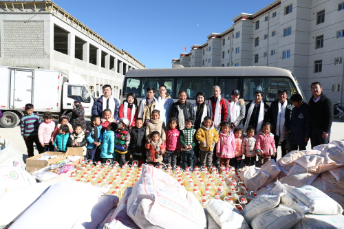 2015年12月19日,值此圣誕、新年即將到來之際,香格里拉大酒店及西藏阜康醫(yī)院部分員工乘坐滿載物資的貨車以及一輛客車,探訪了如今居住在日喀則市北郊公租房的聶拉木縣樟木鎮(zhèn)立新居委會的村民們,為經(jīng)歷災(zāi)難、過上了新生活的聶拉木縣居民們送上了節(jié)日問候。