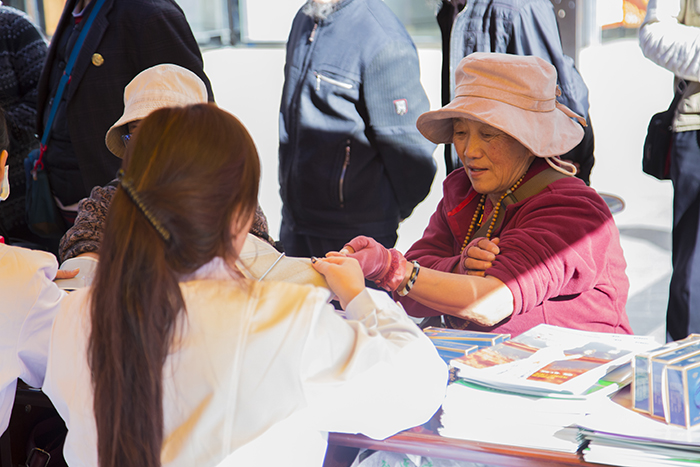 自14日早上九點(diǎn)活動(dòng)開始,前來阜康醫(yī)藥義診宣傳點(diǎn)測(cè)血壓、測(cè)血糖、咨詢身體健康問題及安全用藥知識(shí)的人便絡(luò)繹不絕,整整一上午,阜康醫(yī)藥16名醫(yī)護(hù)人員都在一刻不停的忙前忙后,但能夠?yàn)閺V大藏族同胞及社會(huì)群眾服務(wù),大家都絲毫不覺得辛苦,反而發(fā)自內(nèi)心的感到充實(shí)與喜悅。據(jù)活動(dòng)結(jié)束后統(tǒng)計(jì),本次活動(dòng)西藏阜康醫(yī)藥發(fā)展有限公司免費(fèi)發(fā)放各類相關(guān)資料千余份,免費(fèi)發(fā)放維生素、鈣片、風(fēng)濕及心腦類等藥品一萬兩千余元,免費(fèi)測(cè)血壓、血糖、看病等也多達(dá)數(shù)百人次。