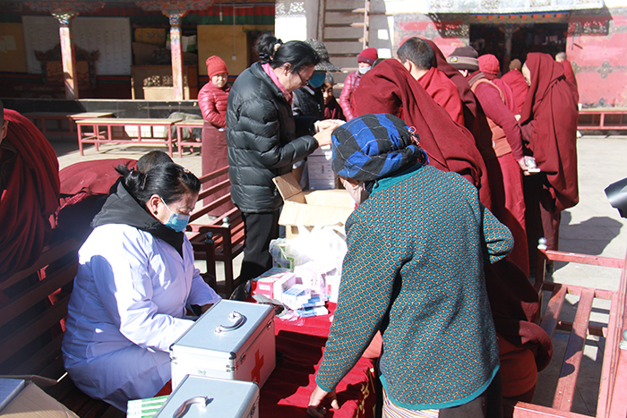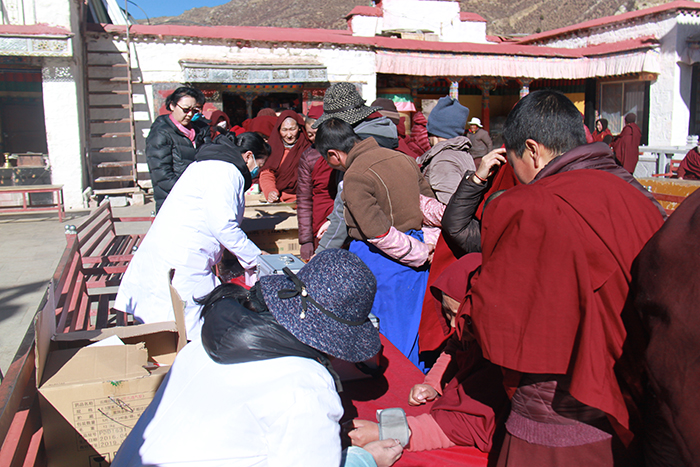 為進(jìn)一步體現(xiàn)黨和政府對(duì)廣大僧眾的關(guān)心關(guān)愛(ài),切實(shí)解決僧人看病難的實(shí)際困難,保障僧人身心健康,落實(shí)各項(xiàng)利寺惠僧政策,2017年2月11日,區(qū)黨委老干部局聯(lián)合西藏阜康醫(yī)院專(zhuān)家來(lái)到曲水縣雄色寺,為當(dāng)?shù)厣姾托沤倘罕婇_(kāi)展送醫(yī)送藥免費(fèi)義診活動(dòng)。