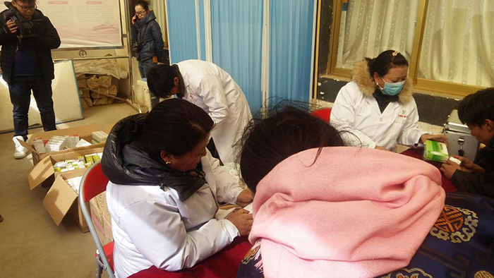 義診活動(dòng)在下午三點(diǎn)半開始,前來就診咨詢的群眾絡(luò)繹不絕。醫(yī)務(wù)人員在為患病群眾把脈號(hào)診、開處方的同時(shí),結(jié)合那曲縣羅瑪鎮(zhèn)群眾常見病、多發(fā)病及高海拔地區(qū)的氣候特點(diǎn),給當(dāng)?shù)厝罕娞岢隽巳粘I铒嬍辰ㄗh,在疾病預(yù)防、降低常見病發(fā)病率方面提供生活指南。義診期間,醫(yī)療服務(wù)小分隊(duì)醫(yī)務(wù)人員加班加點(diǎn),共為羅瑪鎮(zhèn)的400余名群眾進(jìn)行了義診檢查,發(fā)放藥品價(jià)值2萬余元,在為患病群眾解除病癥、減輕病痛的同時(shí),切實(shí)溫暖了廣大群眾的心。