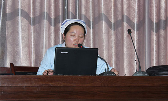 2015年6月10日,由護士長王青青主講的基礎護理服務工作規(guī)范培訓講座在阜康醫(yī)院婦產(chǎn)兒童分院進行,在講座中,護士長王青青主要強調各科室針對不同疾病的患者應該如何進行護理服務,以及在護理的過程中應該注意哪些細節(jié),比如如何協(xié)助活動不便的患者翻身或者下床,怎樣為患者清理面部、口腔、會陰等部位,留置管怎樣護理等。講座現(xiàn)場,不少培訓的護理人員也向王青青護士長反應了自己在臨床工作中遇到的一些問題,王青青護士長一個一個耐心的向大家解答。