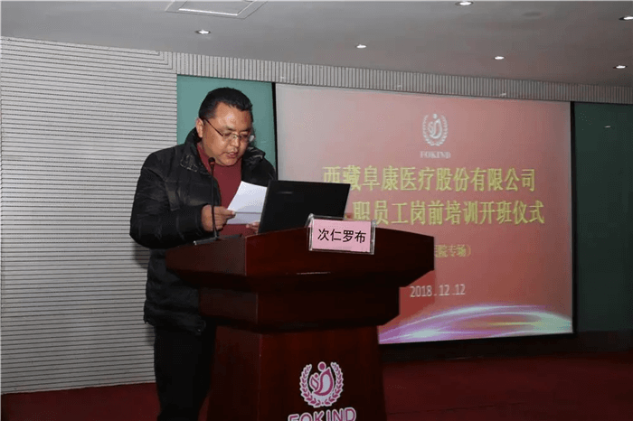 西藏玉拓醫(yī)療健康養(yǎng)老產(chǎn)業(yè)有限責(zé)任公司總經(jīng)理次仁羅布為本次培訓(xùn)活動致辭:“西藏阜康康復(fù)醫(yī)院是一家康復(fù)??漆t(yī)院,也是‘玉拓醫(yī)療’和‘阜康醫(yī)療’聯(lián)合創(chuàng)辦的醫(yī)院,我相信我們兩家公司一定會精誠合作,將康復(fù)醫(yī)院發(fā)展成為技術(shù)一流、服務(wù)一流的現(xiàn)代化醫(yī)院!”
