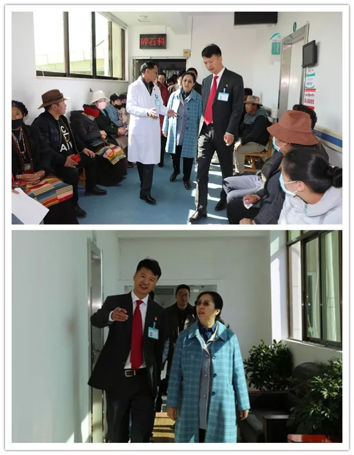 在阜康醫(yī)院綜合院區(qū),羅梅副主席調(diào)研了醫(yī)院急診科、超聲科,親切問(wèn)候就診患者。在醫(yī)院五樓院史館,羅梅副主席參觀了阜康國(guó)際醫(yī)院設(shè)計(jì)效果圖,聽取了阜康醫(yī)療積極踐行“百企幫百村”精準(zhǔn)扶貧行動(dòng)、投入700萬(wàn)元對(duì)口援助嘉黎縣人民醫(yī)院、夏瑪鄉(xiāng)衛(wèi)生院項(xiàng)目的介紹。