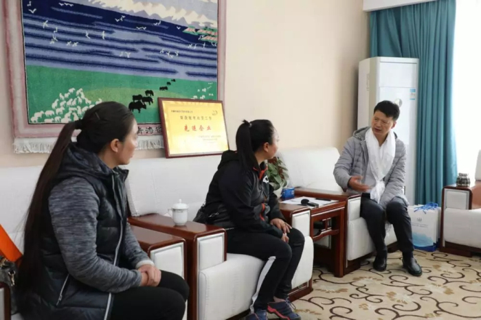 2019年5月14日上午,嘉黎縣扶貧辦主任、脫貧攻堅(jiān)指揮部辦公室副主任才旦卓嘎和嘉黎縣脫貧攻堅(jiān)指揮部轉(zhuǎn)移就業(yè)組負(fù)責(zé)人(副組長)卓央開車經(jīng)過七個(gè)多小時(shí)的長途跋涉來到我院,只為親自獻(xiàn)上潔白的哈達(dá),送來所有鄉(xiāng)親們的問候和祝福,向阜康和王斌董事長表達(dá)深深的感激之情!