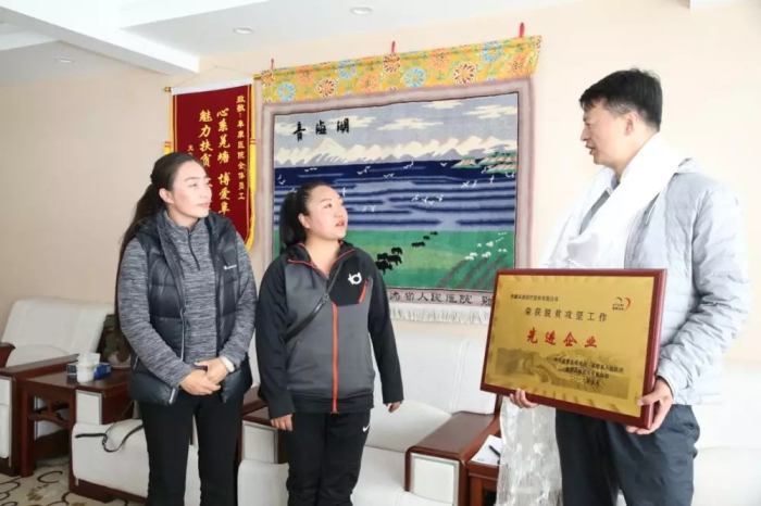 隨后,才旦卓嘎向阜康醫(yī)療股份有限公司黨委書記、董事長王斌頒發(fā)“脫貧攻堅(jiān)工作先進(jìn)企業(yè)”匾牌。
