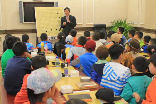 頒完獎項,本次拉薩市2015年“阜康杯”少兒圍棋錦標(biāo)賽也落下了帷幕。最后,我們有幸請到了國手九段的曹老為我們拉薩棋院的小棋手們講課,課上,一位位小棋手們端正坐好,聚精會神地聆聽著曹老講 課,生怕錯過什么內(nèi)容。而曹老親切祥和的細(xì)微講解,加之其不時跟小朋友們提問、互動,也讓得這節(jié)特殊寶貴的課堂變得其樂融融!感謝曹老于百忙之中抽出時間為我們的小棋手講課,相信我們的小棋手們在這樣一節(jié)課堂中,必然受益良多。