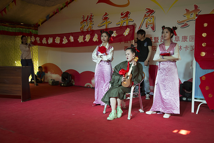 獲得二等獎(jiǎng)的是由阜康體檢中心帶來的小提琴演奏《紫色激情》以及吉他彈唱《年輕的戰(zhàn)場》,西藏阜康婦產(chǎn)兒童醫(yī)院治療室、輸液室?guī)淼牡男∑贰犊床 罚鞑馗房滇t(yī)院內(nèi)一科帶來的的獨(dú)舞《浮花戀影》,西藏阜康醫(yī)院保潔組帶來的的藏語歌曲《人生》。