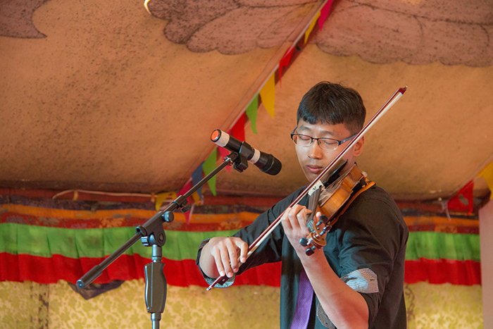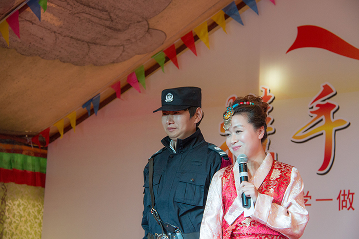 看藏裝典雅,賞舞姿婀娜。在三位主持人熱情洋溢的主持下,一曲優(yōu)雅典美的藏舞《芒康弦子》正式拉開了本次林卡文藝匯演的帷幕,也再度點(diǎn)燃了大家的林卡情懷!隨后,由醫(yī)院各科室員工帶來的諸如藏語歌曲演唱、小提琴演奏、架子鼓演奏、吉他演奏、古箏演奏、軍禮表演、現(xiàn)代舞蹈、獨(dú)舞、歌唱、小品、相聲、T臺(tái)秀、大合唱等一系列精彩紛呈的節(jié)目應(yīng)接不暇地呈現(xiàn)在大家眼前,讓現(xiàn)場觀眾為之歡呼雀躍,好不開懷。同時(shí),在本次的林卡文藝匯演中,還有一個(gè)十分特殊的節(jié)目——一個(gè)名為塔巴次仁的藏族小男孩及其家屬為我們?nèi)w阜康工作人員寫來一封感謝信,并在林卡演出現(xiàn)場為大家演唱了一首《感恩的心》。
