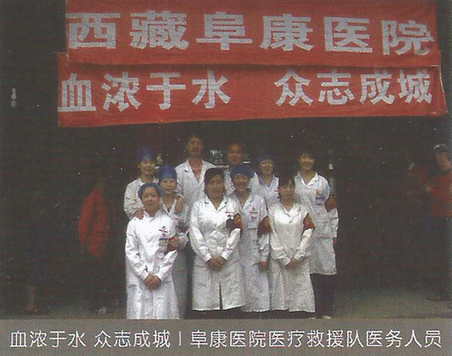 2008年5月12日14時28分,在得知發(fā)生在四川汶川8級的強烈地震后,王斌被深深的震撼了,5月13日第一時間帶頭捐款并號召全公司347名員工為災區(qū)人民獻愛心,在王斌的帶領下短短的一上午公司即向西藏紅十字會捐款10062萬元(其中王斌個人捐款5062萬元)。13日下午,王斌隨即召開阜康醫(yī)院醫(yī)務人員趕赴災區(qū)醫(yī)療救援動員大會,并迅速組建了一支由他本人作為領隊的26人醫(yī)療救援隊。同時他還帶領醫(yī)療隊為盡快抵達地震災區(qū)并第一時間參與醫(yī)療救援,而且決定在成都臨時購買一輛配備完善的救護車,還包括大量藥品、生活物品、以及部分醫(yī)療設備,此次救災共投入130余萬元。