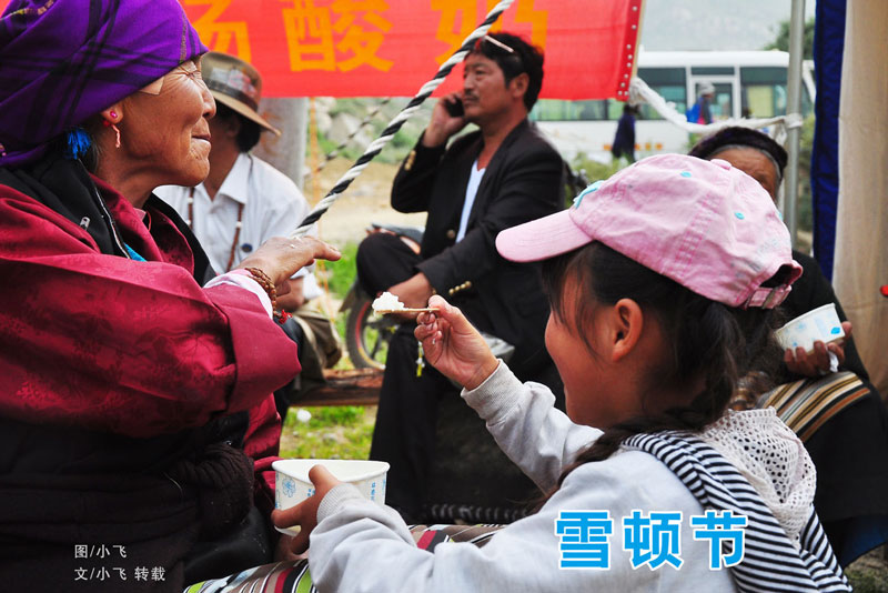 雪頓節(jié),是西藏最隆重的節(jié)日,千千萬萬的佛教徒從全世界涌向拉薩,以最虔誠(chéng)的心、一步個(gè)頂禮膜拜,朝拜至高無上的佛祖。佛教信徒們到山上去修行,修行完畢時(shí)家里的親人帶著酸奶到山上去迎接他們,在回家的路上人們吃酸奶、跳舞、唱歌。