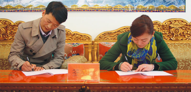 4月24日下午西藏阜康醫(yī)院與拉薩市民政局以及七縣一區(qū)民政部門負(fù)責(zé)人現(xiàn)場一一蓋章簽訂醫(yī)療救助“一站式”即時結(jié)算服務(wù)協(xié)議書。西藏阜康醫(yī)院董事長王斌先生在協(xié)議書簽定會上為解決困難群眾看病就醫(yī)做出了堅定的承諾。