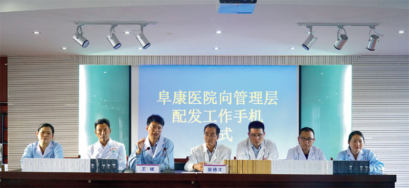 王斌董事長在配發(fā)儀式上說道:“給醫(yī)院中層領導配發(fā)手機是為了更好地聯(lián)系群眾,手機每月129元的套餐費用由醫(yī)院出,這樣也大大降低了各科室主任、班組長的通訊費用,希望各位在以后的工作中更好地為大家服好務”。