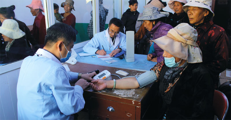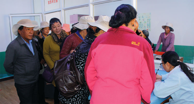 為了更好地開展黨的群眾路線教育實踐,促進醫(yī)患和諧,增強群眾健康意識。2014年9月29日上午10時,市衛(wèi)生局的駐村工作隊聯(lián)合西藏阜康醫(yī)院走進當(dāng)巴鄉(xiāng),為當(dāng)?shù)鼐用耖_展“慶國慶 感黨恩”的大型義診活動。在與駐村工作隊溝通后,西藏阜康醫(yī)院組織了8名臨床經(jīng)驗豐富的醫(yī)護人員參與本次義診,開展兒科、婦科、B超等檢查。