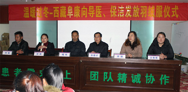 入冬以來,拉薩的氣溫降至零度以下。優(yōu)質(zhì)服務辦為三家醫(yī)院的保潔、導醫(yī)購買了棉衣并2014年12月16日在婦產(chǎn)兒童分院四樓舉行發(fā)放儀式。張德才院長、嘎布院長等院領(lǐng)導出席此次發(fā)放儀式。