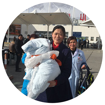 2015年13日下午5時15分,“臨時媽媽”姜子珍抱著小丹增走出機場候機大廳,等待在外的西藏阜康醫(yī)院婦產(chǎn)兒童分院的醫(yī)護人員立即趕上前去檢查小丹增的身體狀況。小丹增在出院前已經(jīng)做了全面的身體檢查,脫離了生命危險,目前身體非常健康。