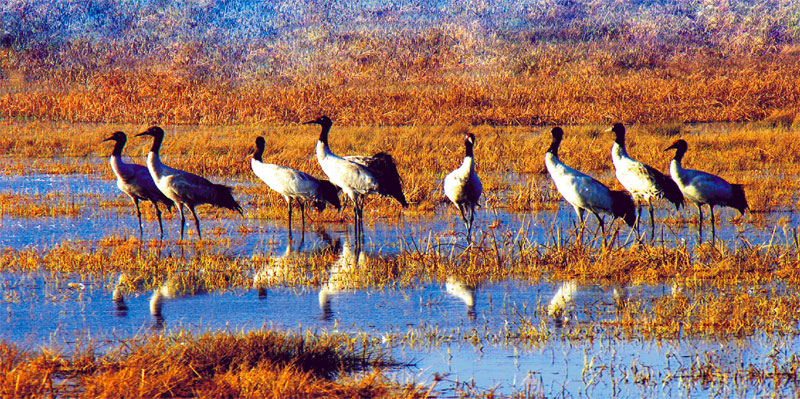 “黑頸鶴?我的黑頸鶴!難道都去覓食了?也不留只看家的。”小彭的感慨于我無礙,他的目標(biāo)是唯一的,我則是見到生靈就高興,如能一睹黑頸鶴的芳容更好。