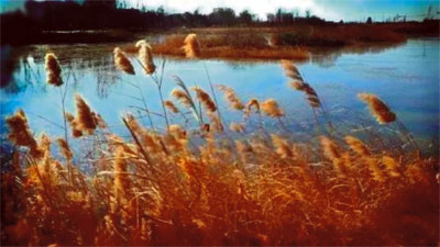 夏季的河灘,酷暑難耐,一株株蘆葦和風而舞,葦影婆娑,勾魂兒似地招呼我們跳進河里洗澡。小孩子喜歡玩水,是天性。說起來蘆葦還是我的“救命恩人”哩。記得我小時候為了玩水,屁股可沒少挨揍??扇詴持绺鐜胰ィ才挛也粫斡静话踩?,于是盡心地手把手教我游泳,那一回在狗刨了幾天后,我試著往深水區(qū)游,沒想到游遠了點,體力不支小腿抽筋了,嚇得只會大叫。后來經(jīng)過拼命掙扎和喝了好幾口水,沒了頭頂?shù)奈胰f幸抓住了河底的一截長葦根才爬上岸來,嚇得臉色發(fā)白、嘴唇發(fā)紫,所幸人無大礙,經(jīng)過這一遭驚嚇,自此再與游水無緣,所以到現(xiàn)在仍是旱鴨子一個。雖然不敢下深水了,但炎炎烈日下,仍會一頭扎進蘆葦茂盛的河汊里摸魚蝦、打水仗,用蘆葉折著小船、做著風車,在蘆葦蕩里捕捉著小鳥、掏著鳥蛋,童趣無窮。