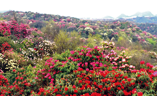 每年的3、4月份是杜鵑花盛開的時(shí)期,放眼望去,方圓百里滿山遍野綠花似雪球;有彩紅、淡紅、紫紅、淡紫、雪白等顏色,色彩斑爛,熱情似火。