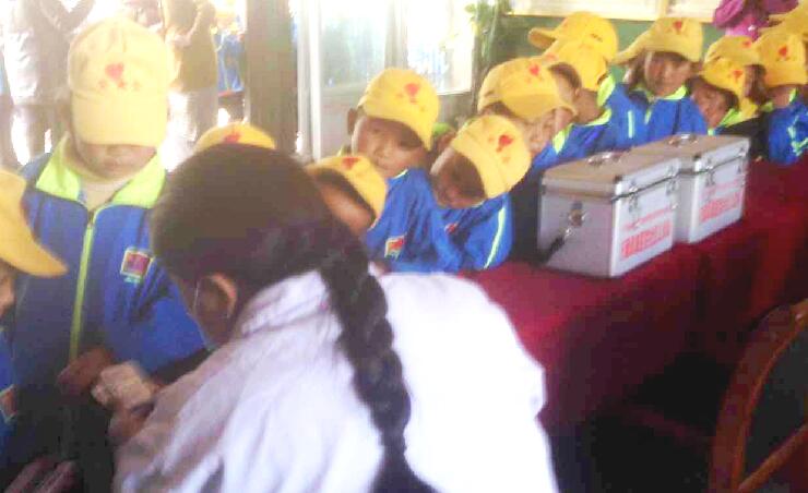 5月31日,受拉薩晚報(bào)社駐墨竹工卡縣甲瑪鄉(xiāng)赤康村工作隊(duì)的邀請(qǐng),由才仁、卓瑪次仁帶領(lǐng)的西藏阜康醫(yī)院社區(qū)義診隊(duì)來(lái)到甲瑪鄉(xiāng)中心小學(xué),為小朋友送來(lái)“健康大禮包”。本次活動(dòng)共計(jì)285名學(xué)生接受體檢,帶去20多種藥品價(jià)值約25000元。一聲溫馨的提醒,一盒充滿愛(ài)意的藥品,都讓孩子們感受著全社會(huì)的關(guān)愛(ài)。